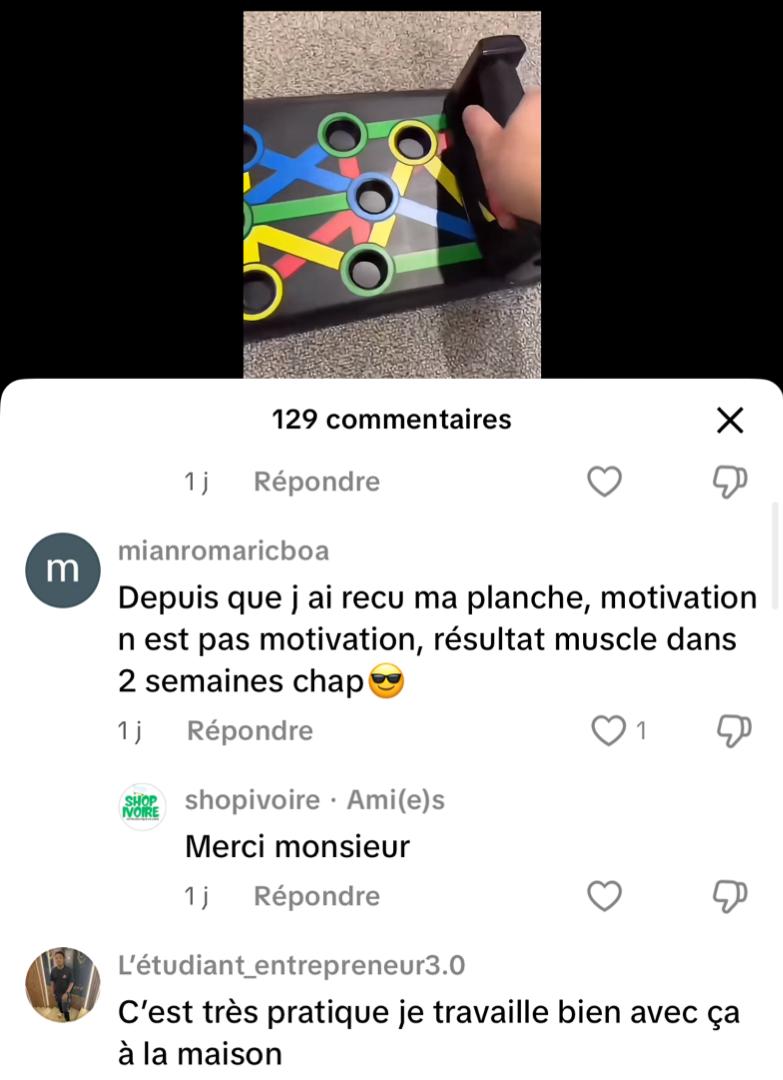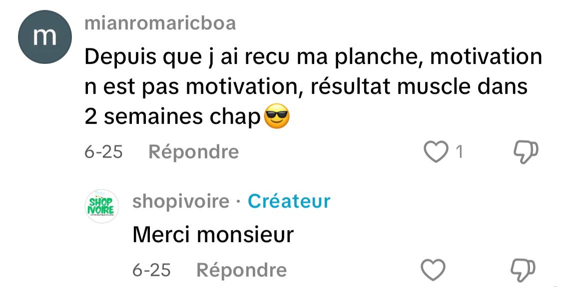 Cette planche-là fait vraiment le travail. Depuis je l’utilise, mes pecs ont commencé à sortir hein. »